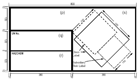 (d) when used in a placard for dangerous goods in bulk — have sides of at
