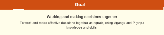 • To work and make effective decisions together as equals, using Aṉangu and Piṟanpa knowledge and skills.